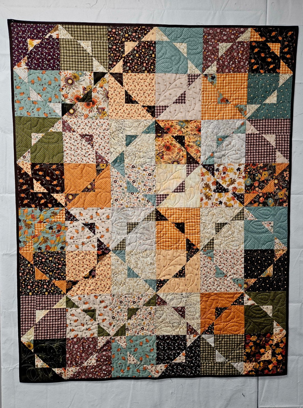 24 prints plus 1 ¾ yard background fabric yields a calmer look