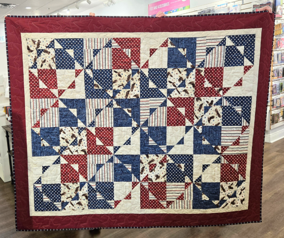 | Requirements: | SUPPLIES NEEDED: Kira pattern Layer Cake with good variety of values and small prints or textures. (Large scale prints will not work) You may need to purchase a little yardage to get a total of 48 squares. We will help you decide this in class as we discuss design options. ½ yard inner border 1 ½ yards outer border ¾ yard binding 3 ¾ yards backing Neutral Thread Stripology Squared Ruler Ruler Stickers Large Olfa Rotary Cutter with NEW BLADE Cutting Mat Sewing Machine in good working order Basic Sewing Supplies Best Press PRE-CLASS HOMEWORK: None, unless you want to open your layer cake and pet your fabric! |